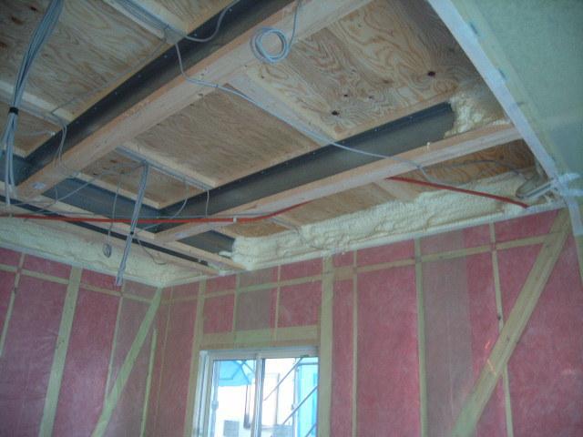 1階『テクノストラクチャー』材の内側にも発泡ウレタンにて断熱・気密処理が施工されます。