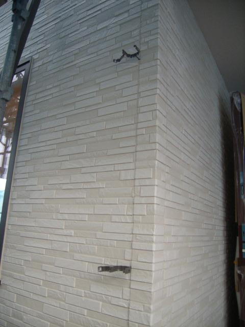 外部では縦樋取付を行っております。