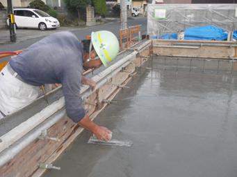 打設後は土間をきれいに均します。