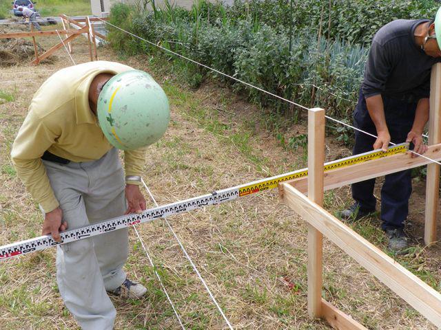 境界からの離れや周辺との高さ関係を確認しながら工事が進められます。
