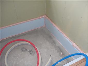システムバスの設置前に外部面に接する基礎を断熱しています。
