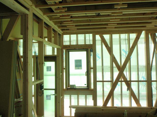 1階も窓枠付けて 断熱工事行ってボード貼りの