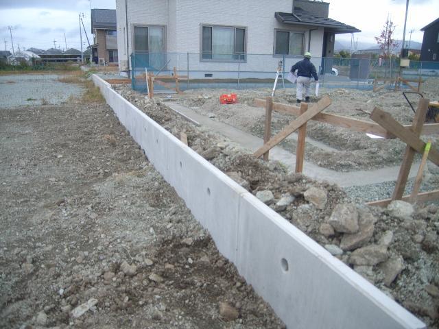構造とは関係のない部分ですが、基礎工事中に土が崩れるのを防ぐために、打設しております。