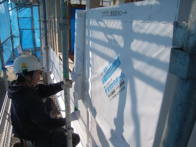 壁体内の湿気を外に逃がしてくれる防水シートです。