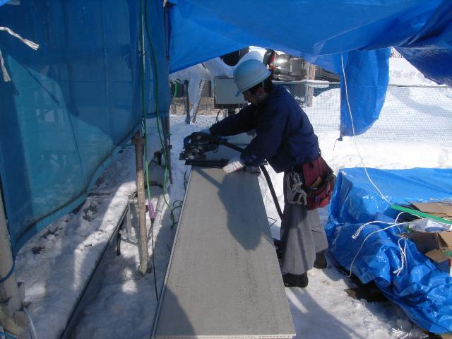 現場に合わせた長さにカットしてから貼っていきます。