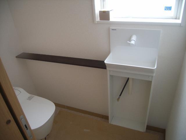 洗面化粧台・2階のトイレも器具付け完了しておりました。