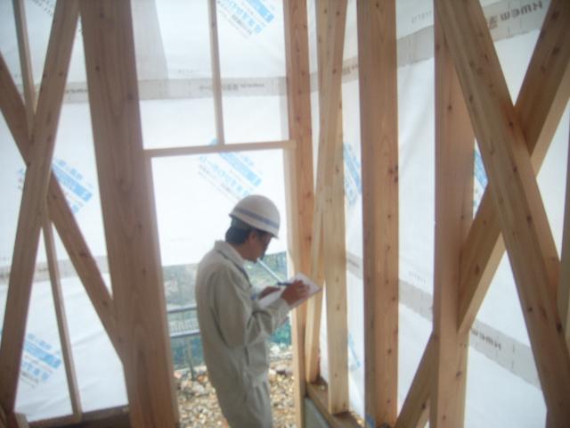 柱と土台、柱と梁を連結している『ドリフトピン』の抜けがないか、筋交いのビスの抜けがないか等々、構造にかかわる全てをチェックしてもらいます。
