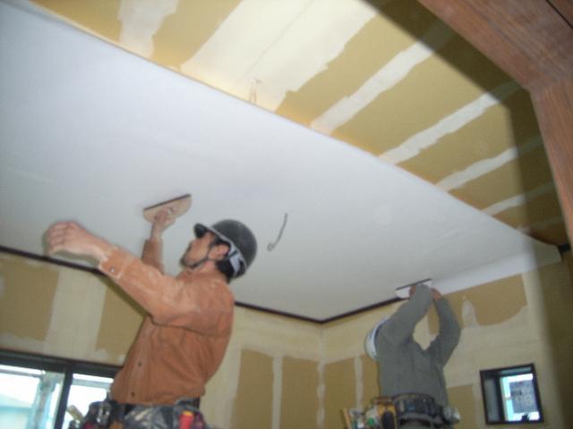 まずは1階 大壁和室の天井クロスから施工開始です。
