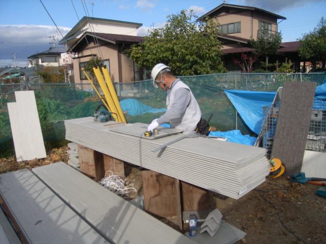 現場に合わせて外壁を加工して貼っていきます。