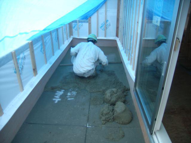 本日、バルコニーの床モルタルを塗りました。