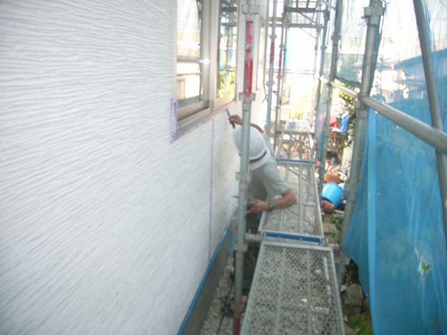 今週は、外部では足場解体、外構工事、内部では、クロス工事と