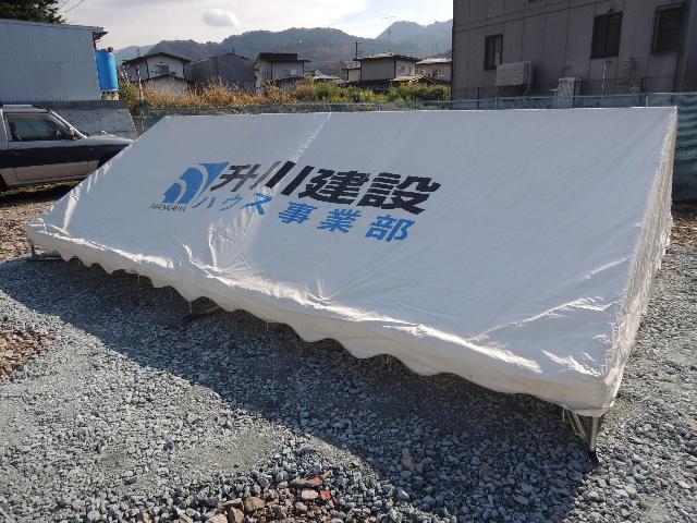建物の位置をだし、式典を執り行う部分に砕石を敷き、テントの準備を行いました。