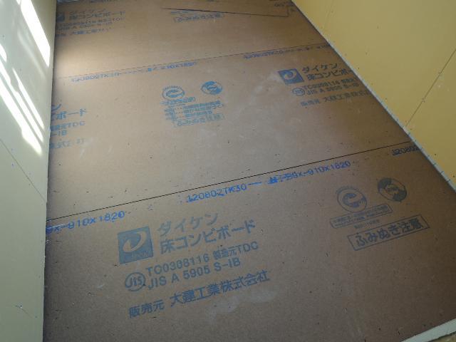 2階の床は1階への振動軽減のため、コンビボードを挟んでの床貼りとなります。