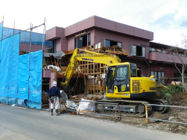 内部解体に続き重機による解体が開始されました。