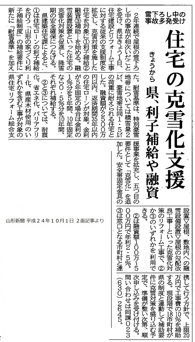 ▼山形県 住宅の克雪化支援 本日より!