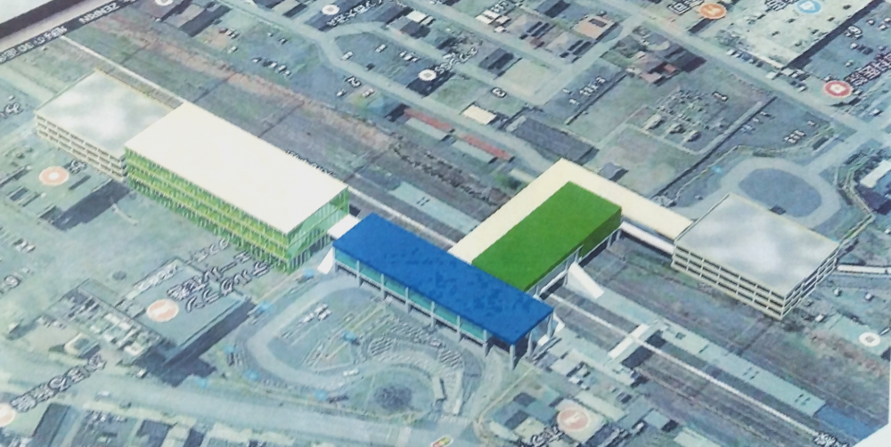 (写真は駅と一体化した図書館のイメージ図。市当局はこの種の話し合いが行われたことは認めたが、その理由については口を閉ざし続けた=文書開示請求によって、入手した資料から)