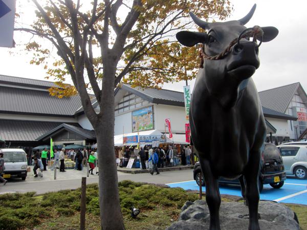 今日は海道物産のかに汁や、カキの蒸し焼きを販売してるよ〜。