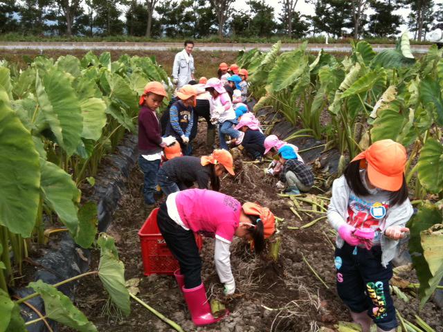 めざみの里観光物産館の畑で作った里芋を収穫体験しました!