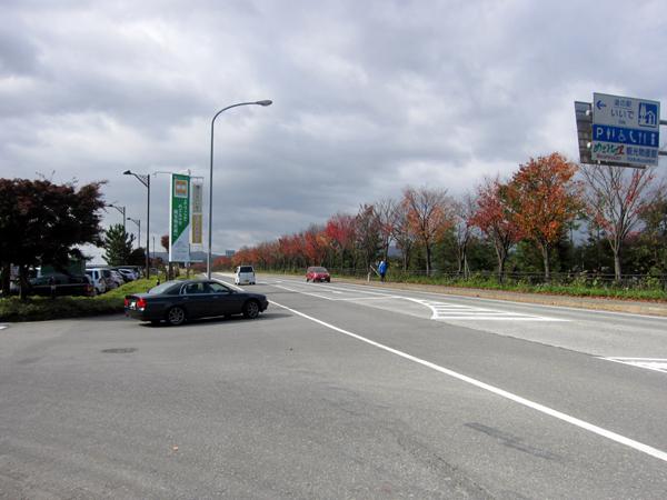 11月4日の113号線は、きのうの雨で大分葉が落ちてしまいましたが、大山桜が真っ赤に紅葉しています〜!
