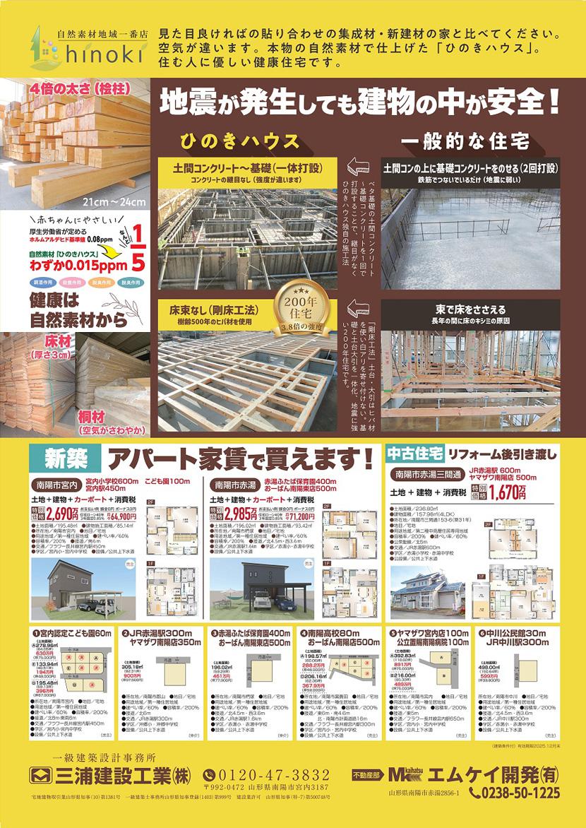さて、高畠町一本柳地区におきまして『ひのきハウス』の完成見学会を開催いたします。