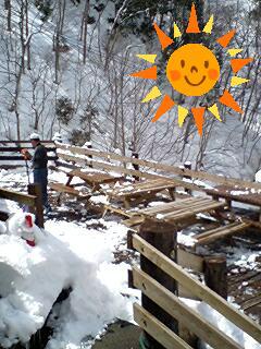 久々に太陽が顔を出し、雪に埋まってしまった見晴らしデッキをリチャードさん掘り起こしましたね(●^o^●)