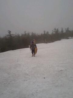 毎年の行事の 登山道の確保のため かもしか展望台 人形石 梵天岩までのルートへ 赤布を付けたり 迷い易い所に縄を張ったりしてきました。例年より残雪も 多く苦労しました。ガスと風に悩まされながらやってきました。