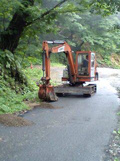 雨水などで 傷んだ道路脇を セルジオが 直しております。