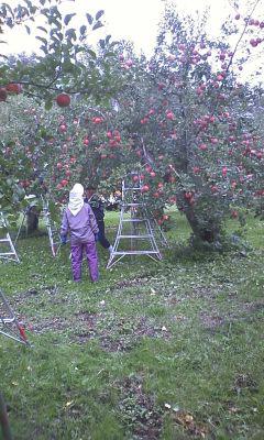 今日は 知り合いの上村農園に行って りんごの 葉っぱ取り作業を手伝ってきました。 「葉っぱ取り」とは りんごの実が満遍なく色ずくように りんごの実の周りの 葉を取り太陽光線が良くあたるようにして色好きをよくする為の作業です。地味な作業ですが、収穫前の大切な作業です。経営者ご夫婦と後継ぎの息子さん 親友の万太郎と いつもの方々で ワイワイと楽しく過ごしてきました。