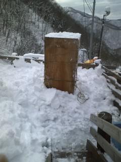 山の宿前に 準備しました。館主の一言がきっかけで ライブカメラを意識して 明日、セルジオがきて カッテングをやります。夕方には 素晴らしい雪灯篭が 出来ると おもいます。