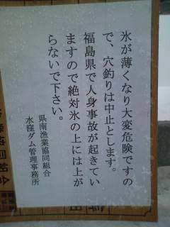 漁場にいきましたら、このような立看板がありました。これで今シーズンの私のワカサギの穴釣りが終了となります。温暖化のせいか 穴釣り期間が毎年短くなって来てます。非常に残念です。
