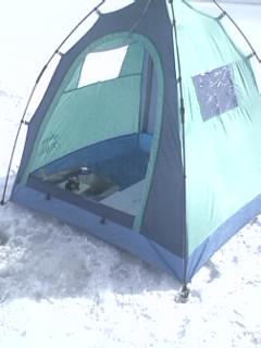 氷の上は 寒いです。やはりテントが必要です。テントの中で食べるラーメンは最高です(インスタント)ですけど。4日は 日差しも強く 気温の割りには テントの中は 温かく過ごせました。釣果は5時間で 223匹でした。