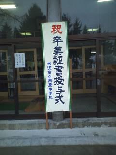 映像だけ載せて コメントがなくすいませんでした。実は娘の中学校の卒業式に 行ってきました。娘は来年卒業なのですが、学年の役員などしてまして、来賓の席で 出席してきました。別れと新たなスタートが 微妙なタッチで使う日でした。でも若いエネルギーは何者にも臆する事なく進んで行く姿は眩しく 私の目には映りました。