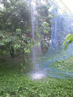 23日の午前9時20分から約45分ぐらいの間に 20ミリの雨量が計測されました。私は さくらんぼの収穫手伝いにきてました。ごらんのような 滝のような雨がビニールハウスの屋根に落ちました。