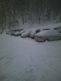 スキー場の駐車場は 賑わっています。天候 雪