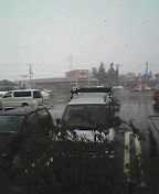 天気予報どおりです。かなり強く雪が 舞ってます。