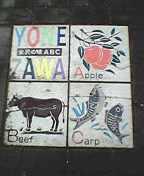 歩かないと だめだね、市内のサテイ通りと市営野球場周辺の 歩道にあります。米沢の名産パターンと祭りのものがありました。
