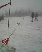 人形石よりかもしか展望台へのルート途中 残雪で登山道が無くなります。ここに縄を張りました縄づたいに ルートをとってください。
