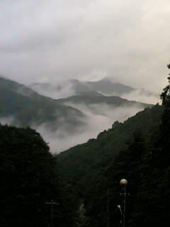 なんか 墨絵のような アングルです。雨の中の 兜山は神秘的の感じを見せています。