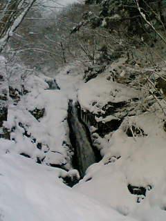 ▼雪の中の白金(しろがね)の滝