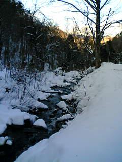 朝 山々に囲まれた小川に 冬の訪れを 感じております。