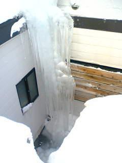 今年は雪の量は少ないが かわりに建物のいたる所に 巨大つららが出現しています。どうゆうわけかは不明ですが 自然のイタズラでしょうか。