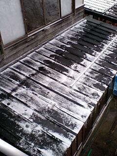 ▼山の宿の屋根はホーキで雪はきです。