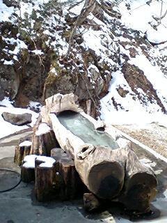 4月中旬目処に 只今準備中 雪の下になっていた 巨木の風呂も姿を表しました。女性専用露天風呂にあります。