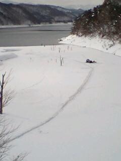 水窪ダム湖が 凍りはじめました。 まだまだ危険状態ですが 2張ほどテントを 発見しました。 ベテランの方のようです。いまは大変危険です。あと1週間ぐらい様子をみたはうが いいようです。