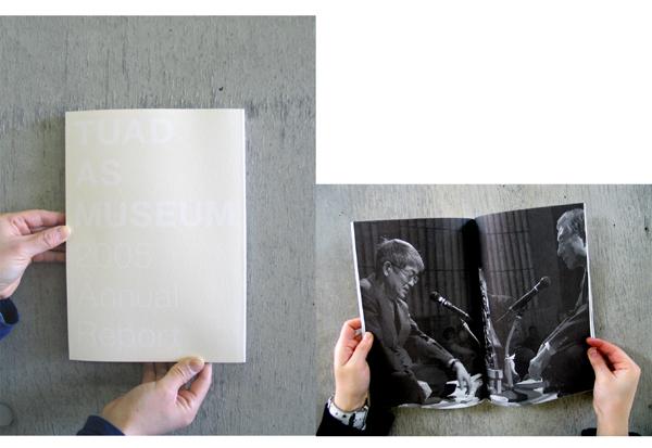 デザインは本学卒業生の小板橋さん(アカオニデザイン)に依頼し、ベージュの地に白く『TUAD AS MUSEUM』の文字が浮かび上がる装幀で、雪深い山形の印象が反映されたシャープな仕上がりになっています。