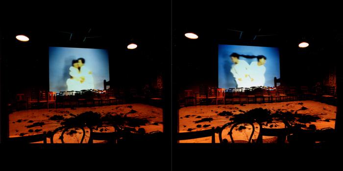 液晶プロジェクター映像、曲げ木椅子、髪の毛、ガラス etc.