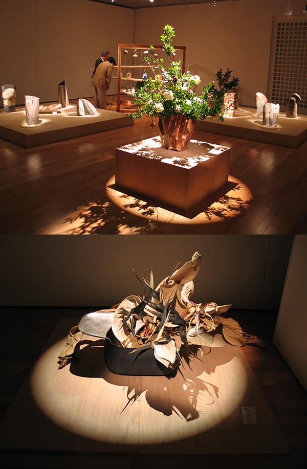会場造作の設計を建築家集団「みかんぐみ」の竹内昌義助教授にお願いし、本学教授陣の花器に小原流師範・三橋光彩氏が生け込みをおこなうという贅沢な展観は、古き良き伝統文化が息づく城下町・鶴岡のつつましい佇まいに、上質な現代性・先鋭性を加えることに成功したと自負しています。
