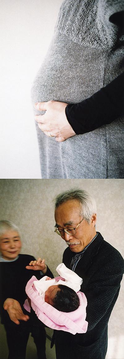 しっかりした身体付きの女の子が生まれたのは、まだ夜も明け切らない5:30で、窓からは蔵王の灰色のシルエットが、薄ら空と大地の境界線を描きはじめていました。白々とした蛍光灯の明かりの下で目撃したその瞬間は、以前、大橋仁氏を紹介したブログでも書きましたが、本当に壮絶で切羽詰まった、愛しい命の瞬きでした。