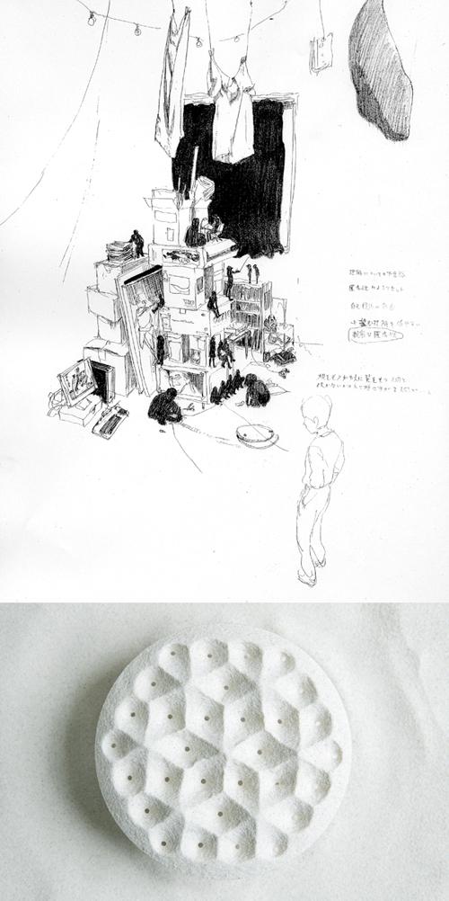 ■写真上:I'm here.07' 参加作家のひとり、後藤拓朗さん(洋画コース卒業/2007.04.04にUP)による本展のイメージ・ドローイング案