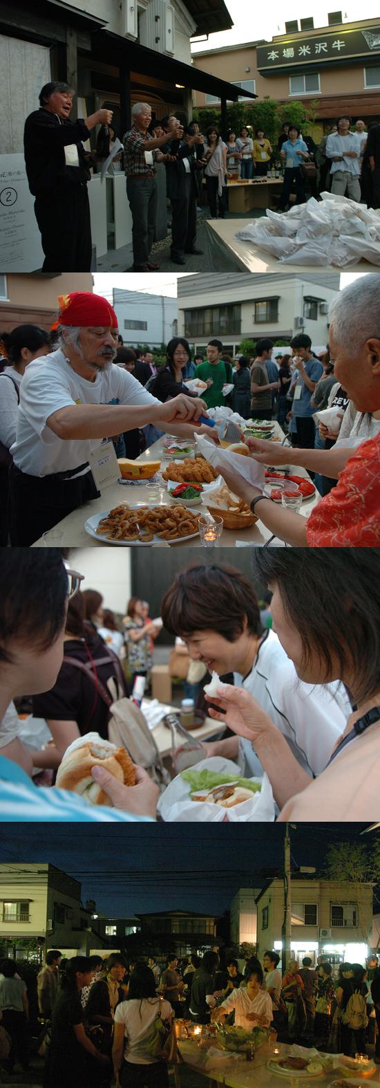 ■写真下:梅雨の奇跡的な晴れ間。夕方からスタートしたパーティーは、真っ暗になっても立ち去り難く、結局夜の9時過ぎまで続きました。参加者は300名を超えました。